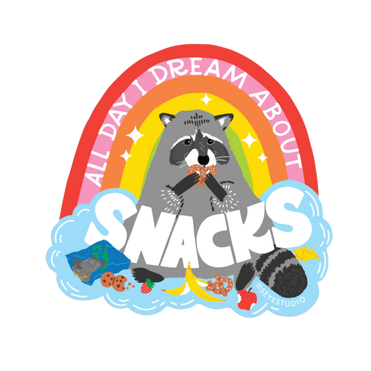 All Day I Dream About Snacks Raccoon Vinyl Sticker