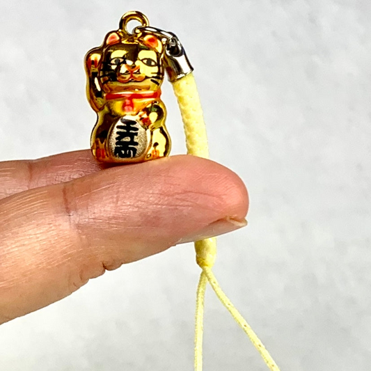 Golden Fortune Cat Bell Keychain