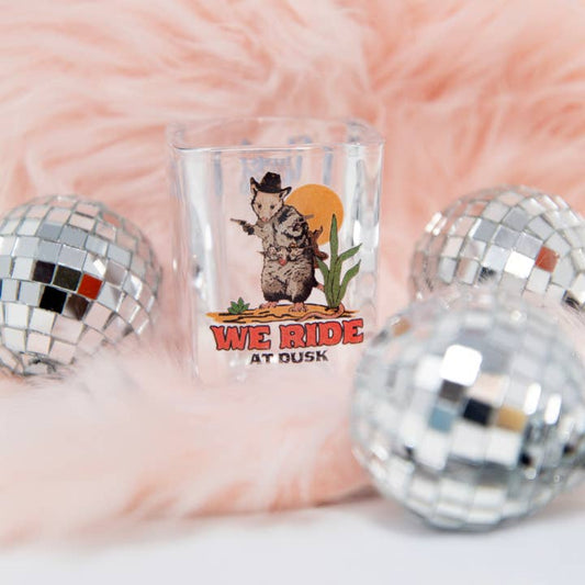 Opossum Cowboy: We Ride At Dusk Shot Glass