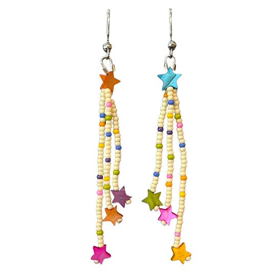 Star Fringe Beaded Dangle Earrings
