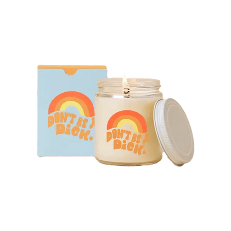 The only thing better than a perfectly-scented all-natural soy-based candle? A perfectly-scented all-natural soy-based candle that screams Don't Be A Dick!