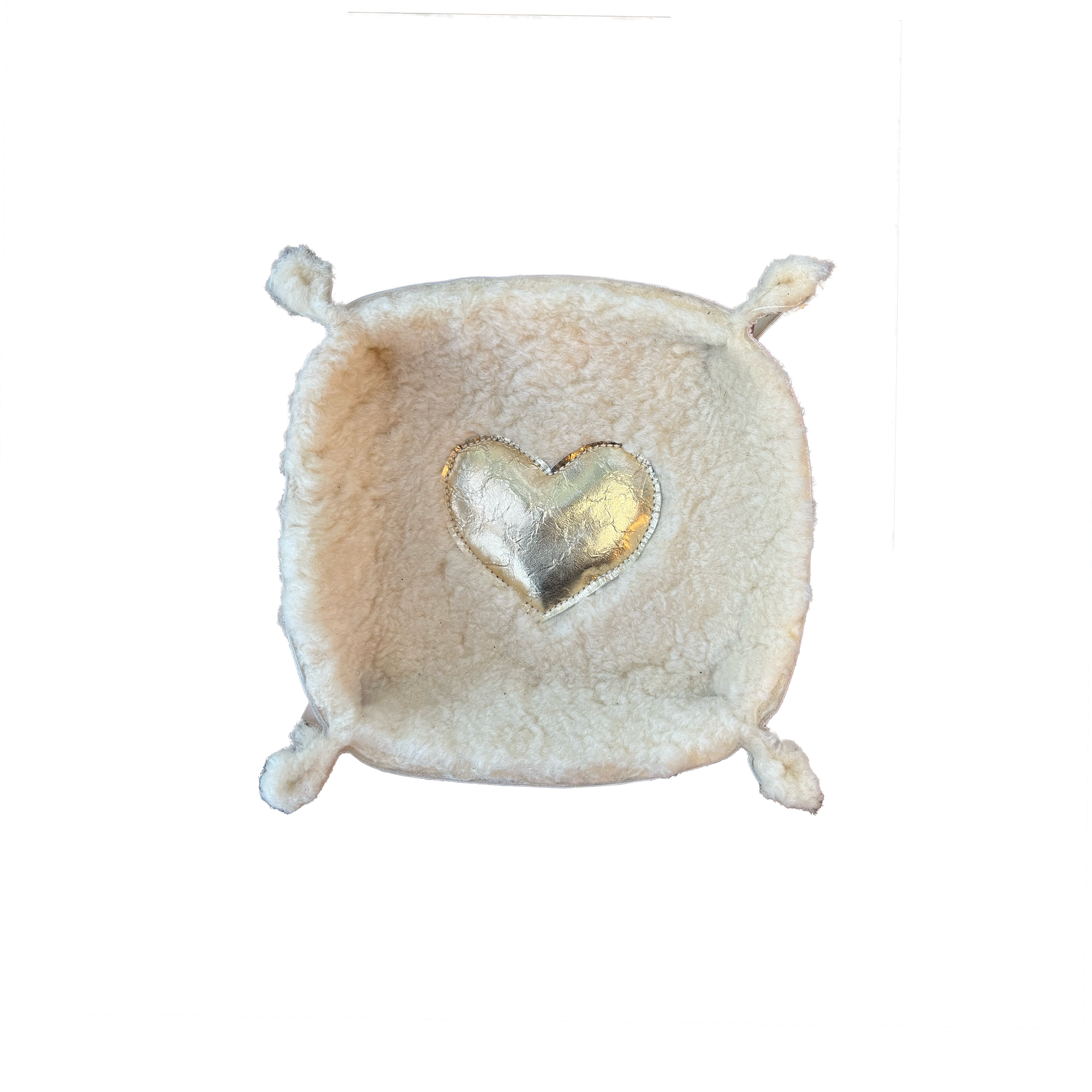 Fluffy Gold Heart Upcycled Leather Catch-All