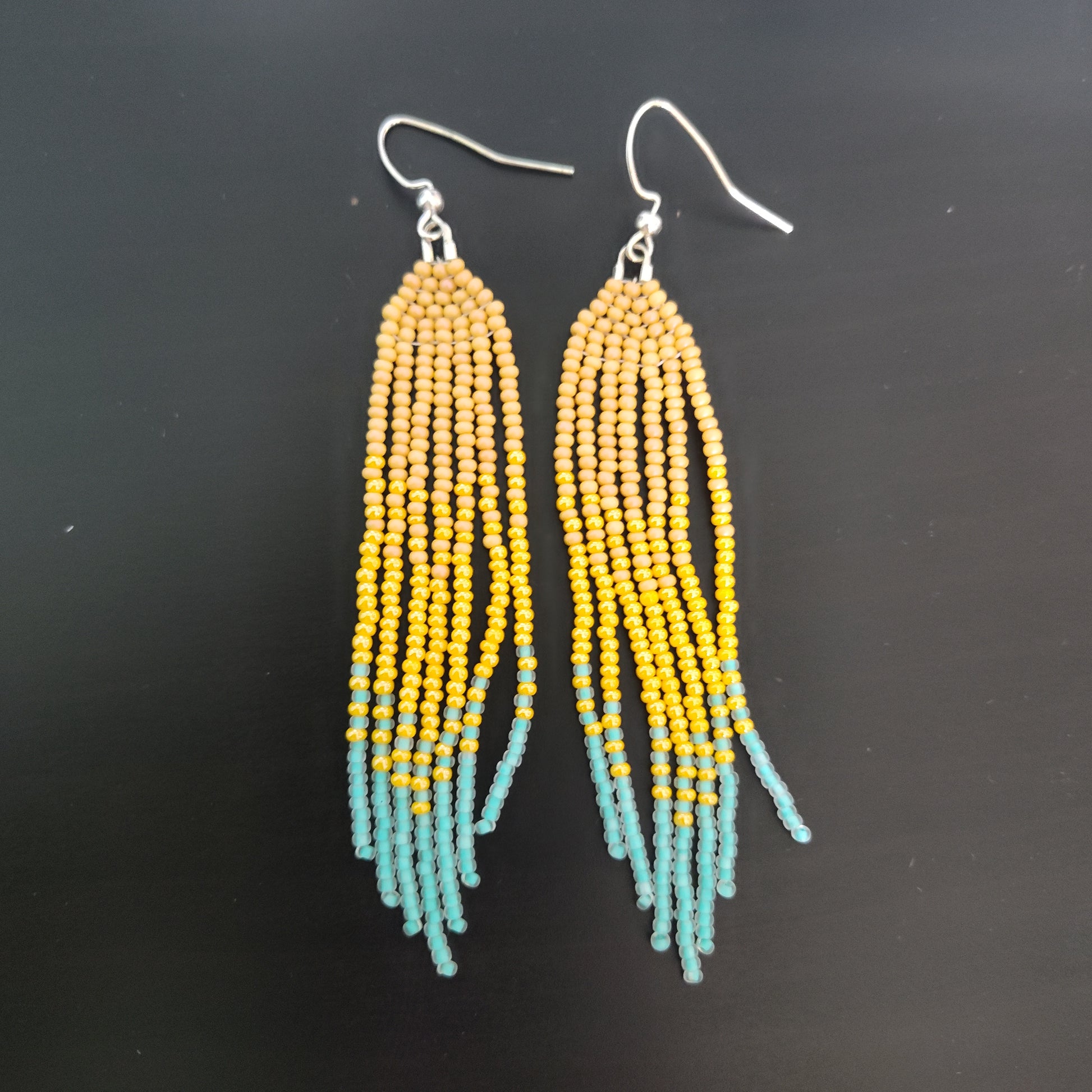 Long Fringe Beaded Dangle Earrings