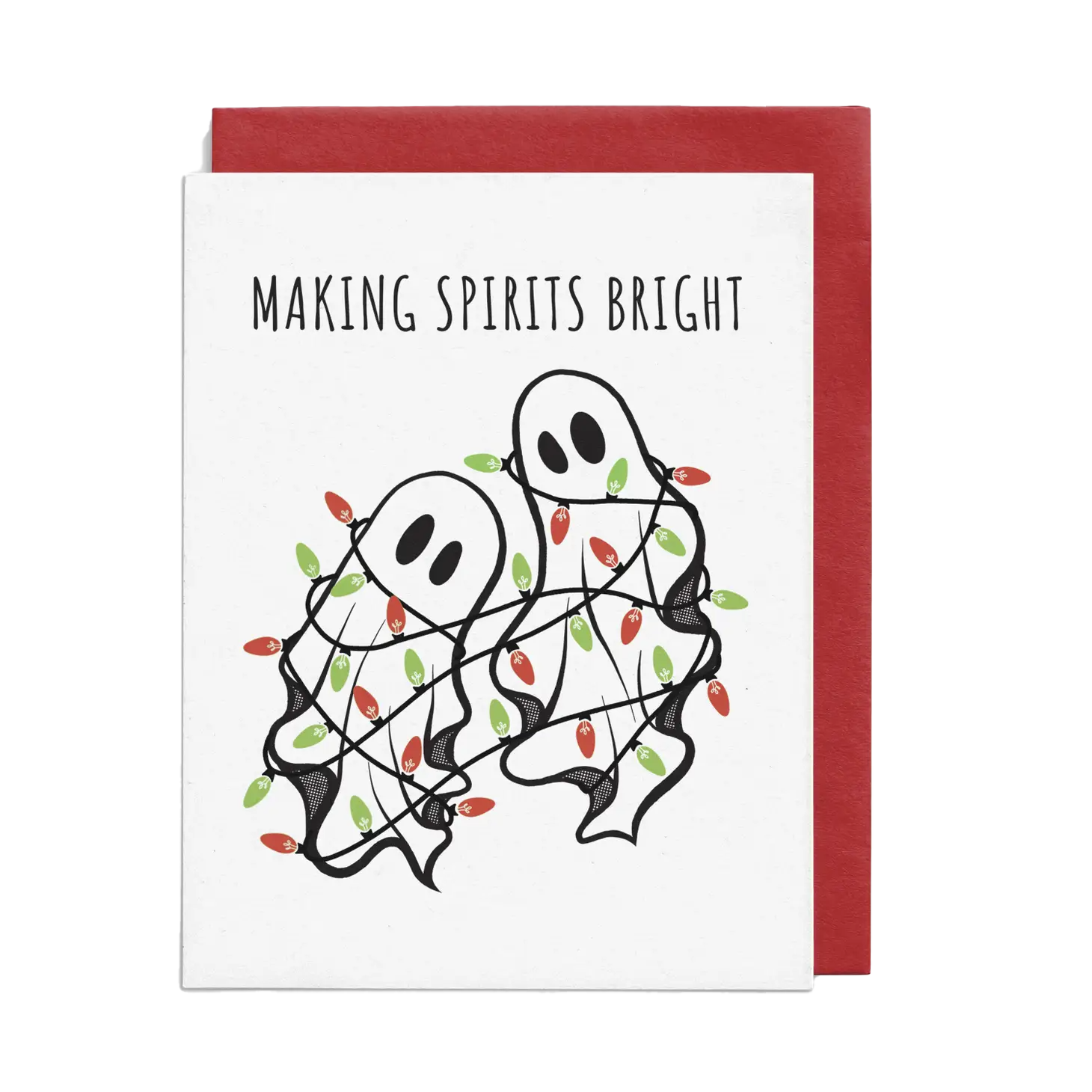 Bring some festive laughs with this Making Spirits Bright Christmas Card! With two playful ghosts all wrapped up in Christmas lights. Great card for anyone still in the spooky spirit.