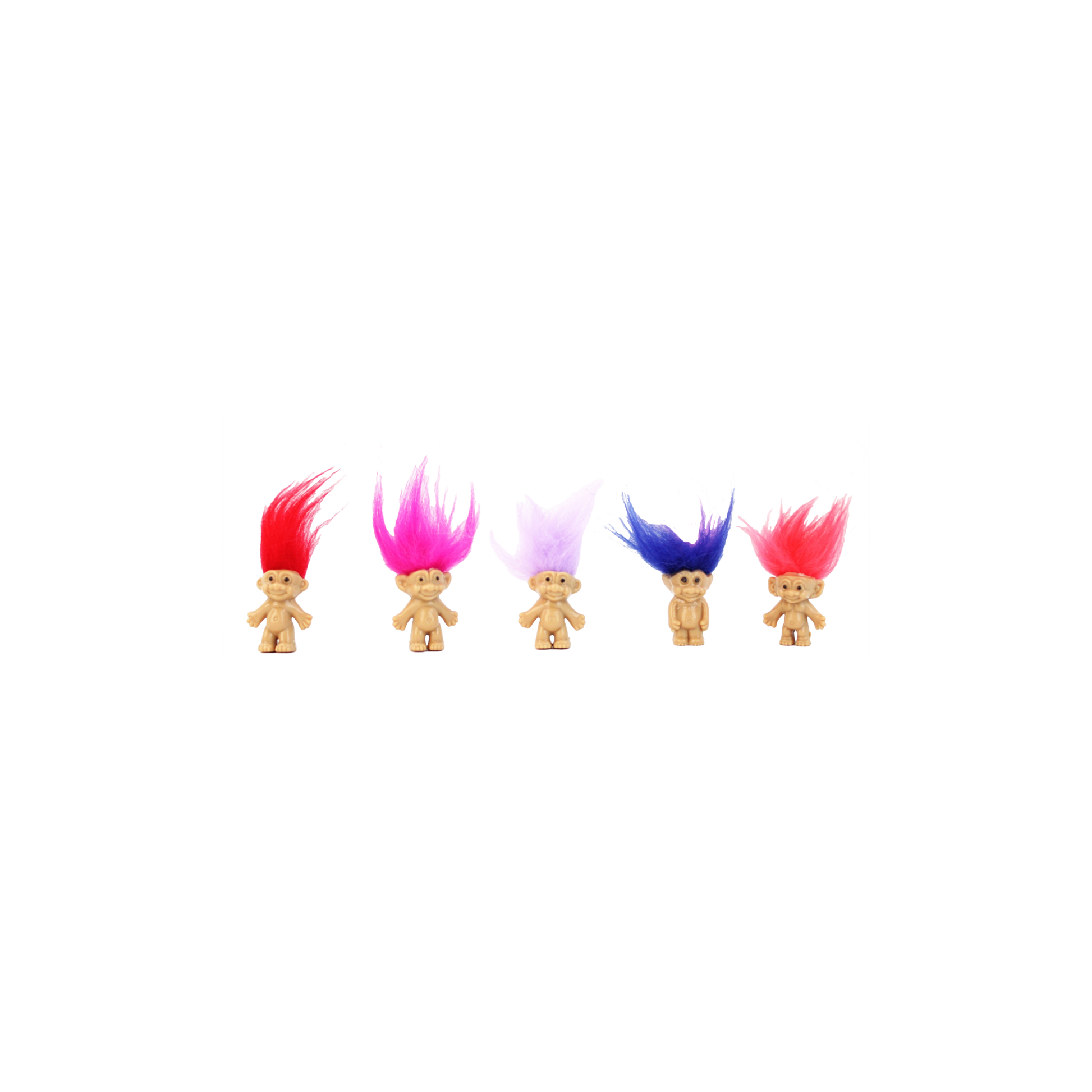 Bring a burst of fun and nostalgia to your day with these Mini Troll Dolls! Their colorful hair and cheeky smiles make them perfect little companions for your desk, backpack, or shelf. Collect them all and let their playful charm brighten any space with a touch of whimsy.