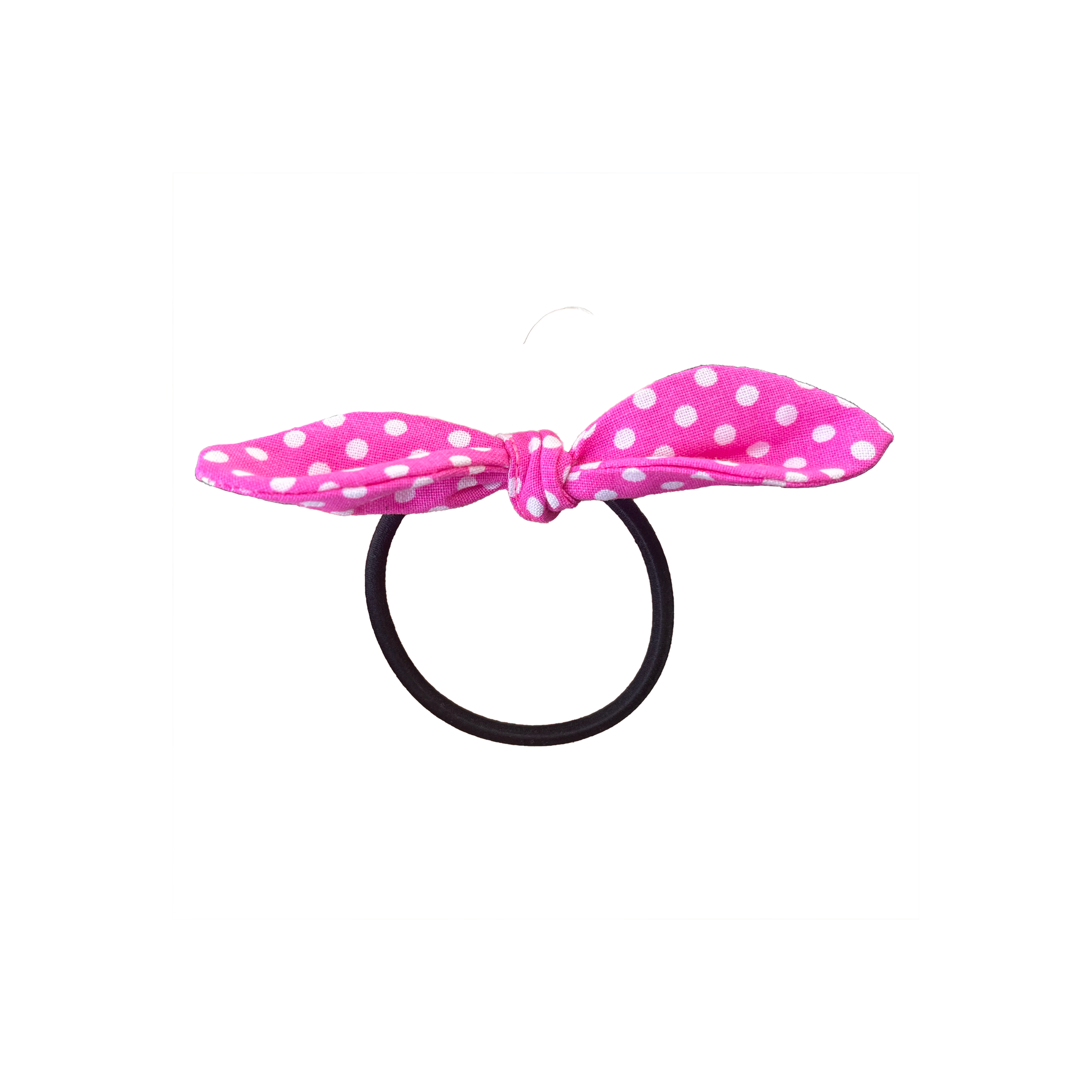 Adorable polka dot pink bow hair ties handmade by Scrunchy Club LBC!