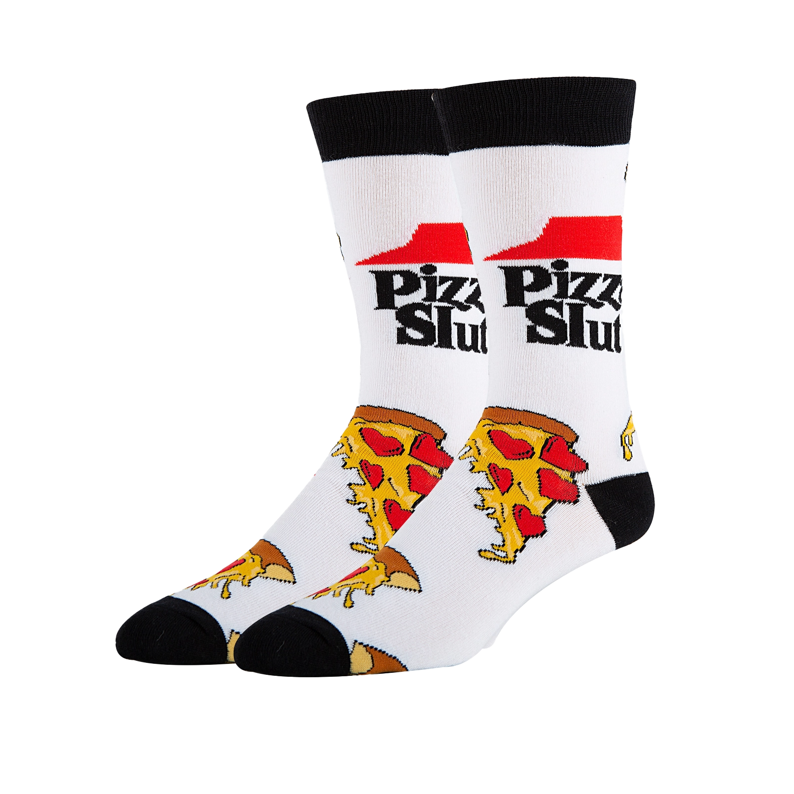 Pizza Slut. There is no shame in loving pizza as much as you do, walk with confidence in these cheesy loving socks.