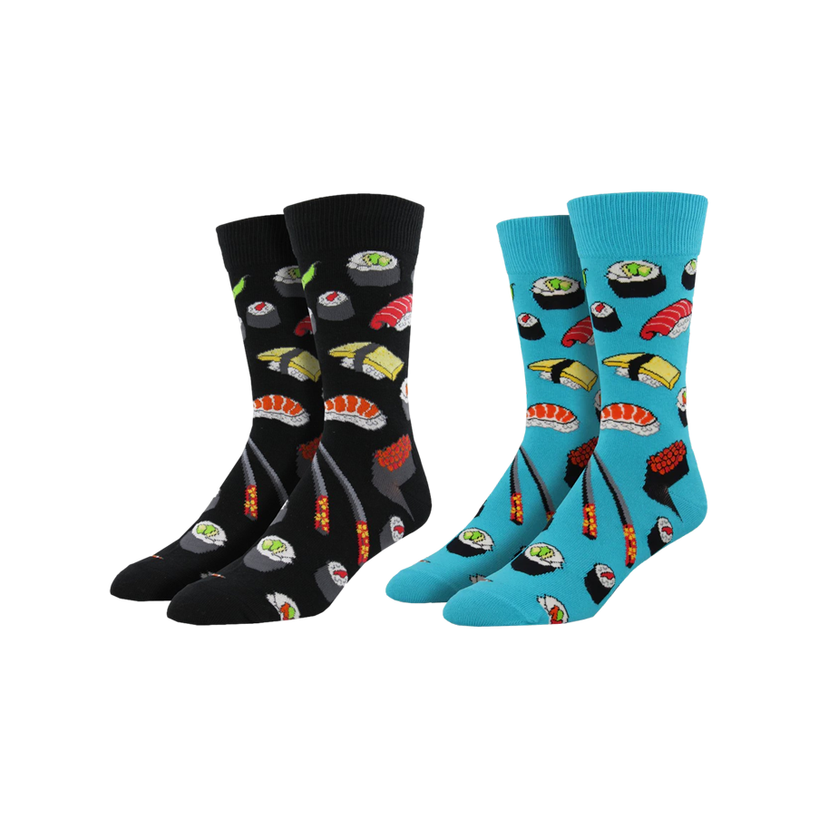 Do you love sushi as much as we do? Then these socks are for you! Featuring chopsticks and a variety of sushi rolls, wear these on your next sushi excursion and your outfit will definitely be on a roll.
