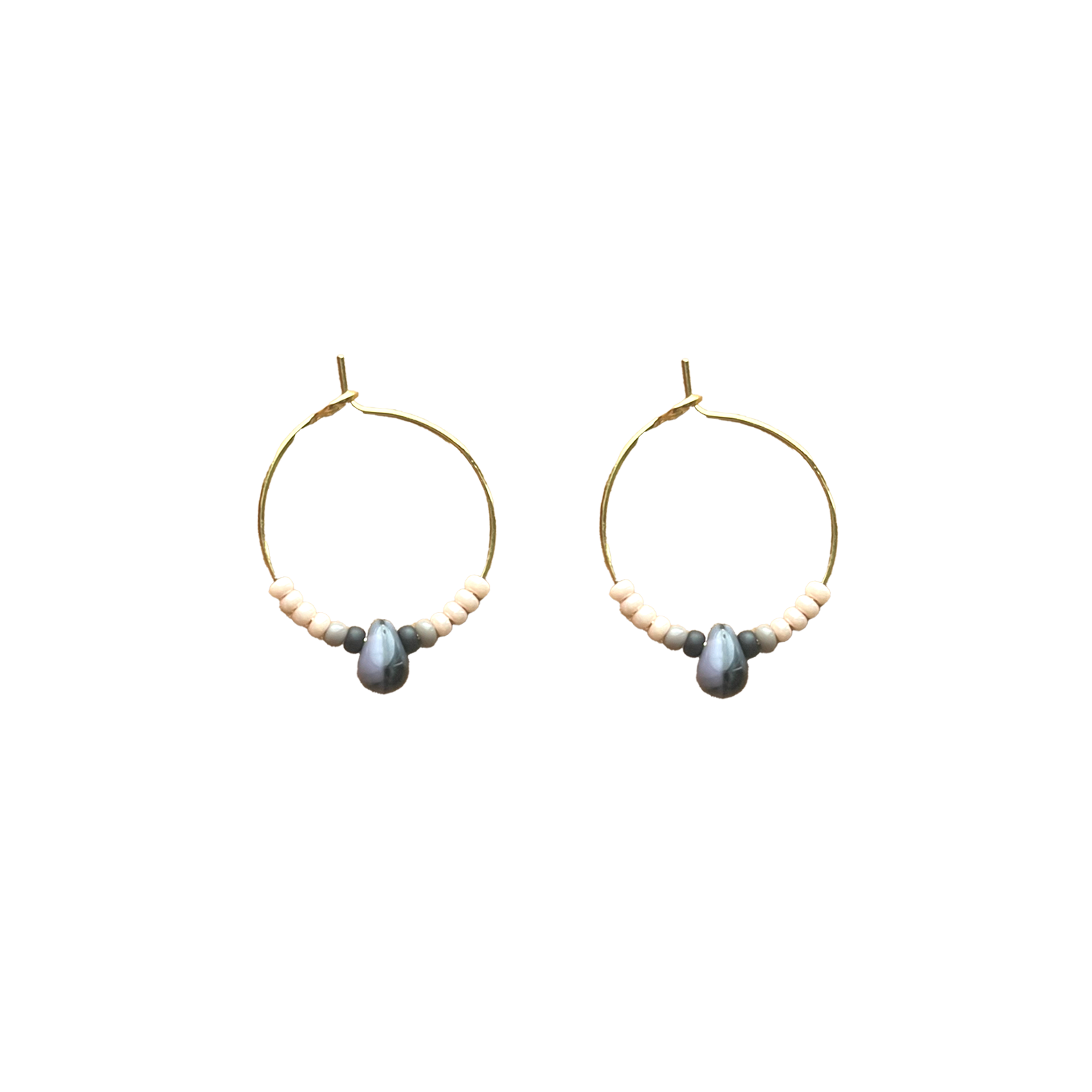 These playful hoops feature a unique teardrop design that will add a touch of boho charm to any outfit. Perfect for day or night, these earrings are a fun and stylish addition to your jewelry collection! Made from Czech glass beads.
