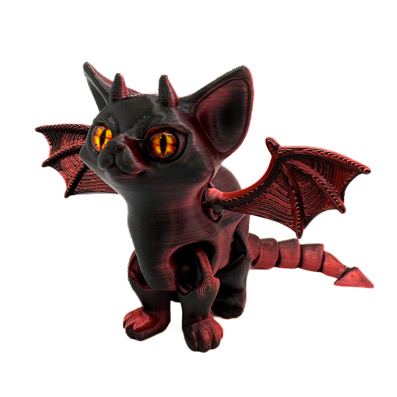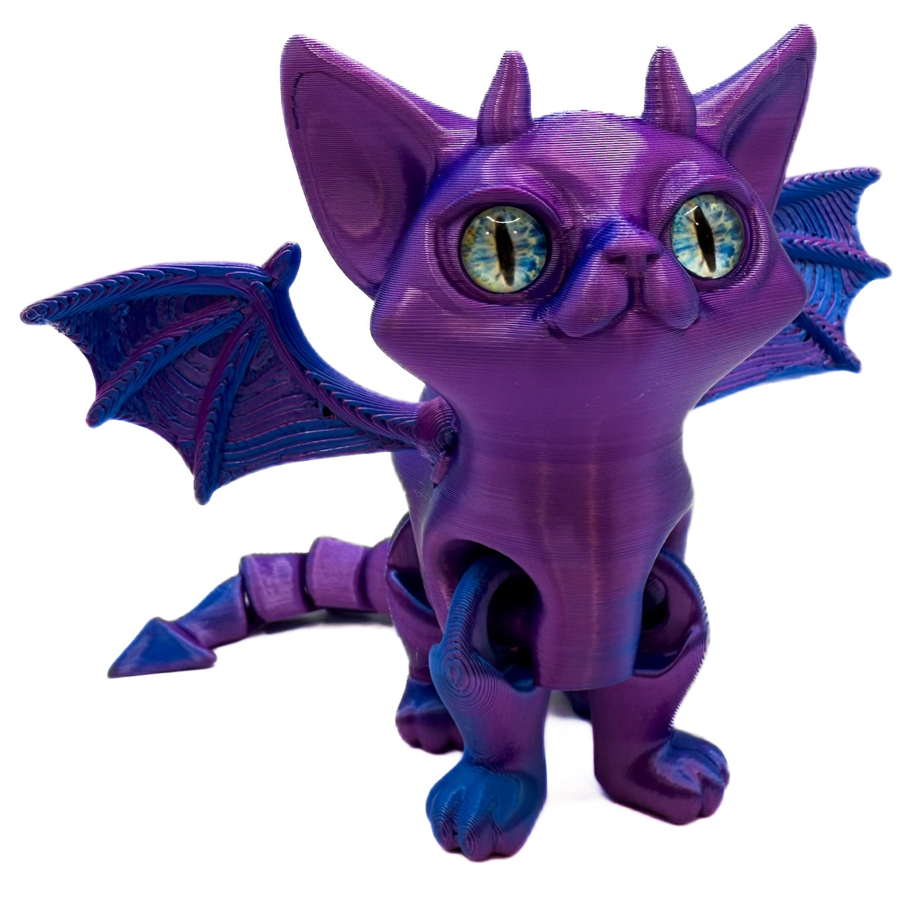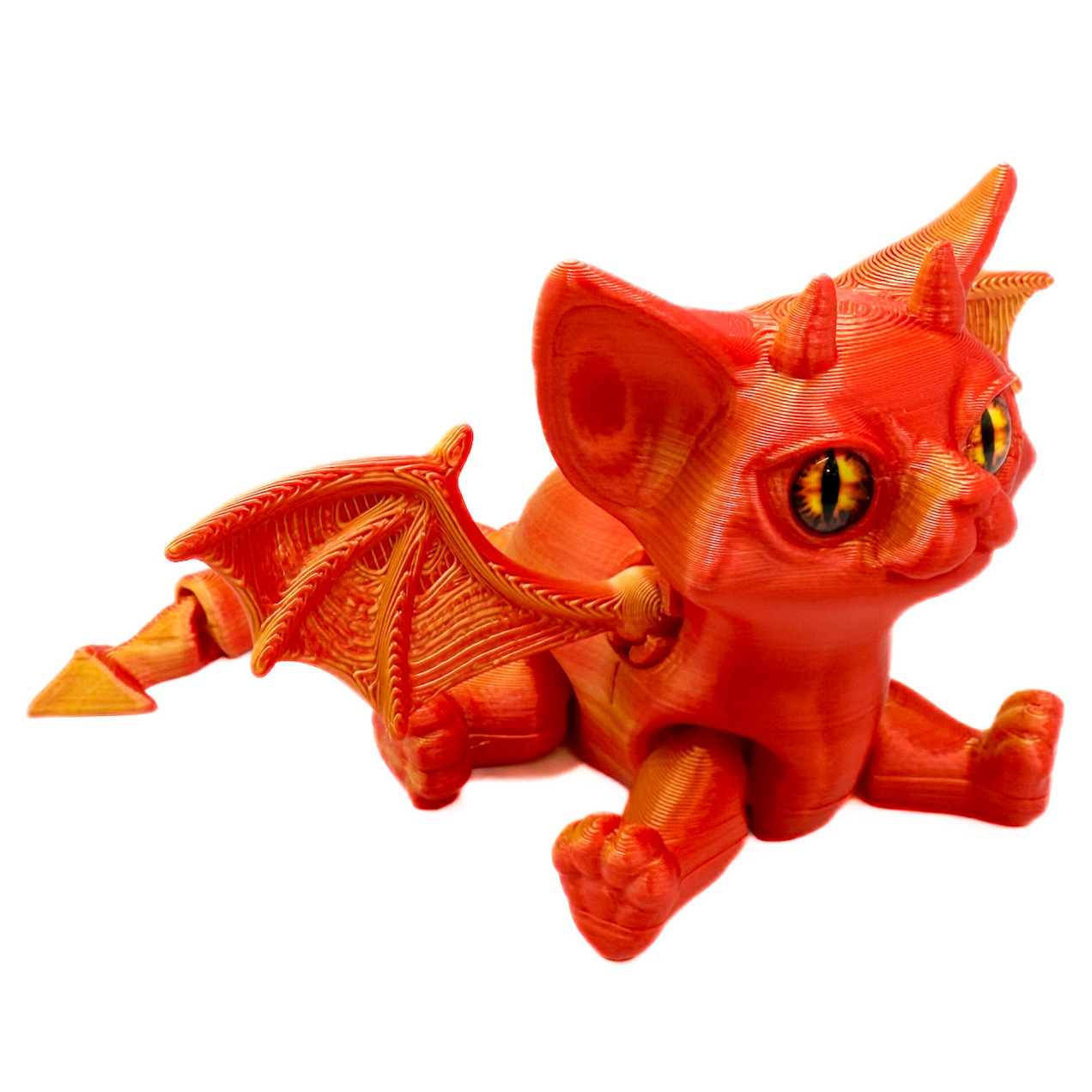 Super cute 3D printed cat with horns and wings.