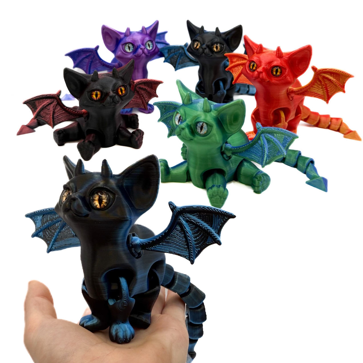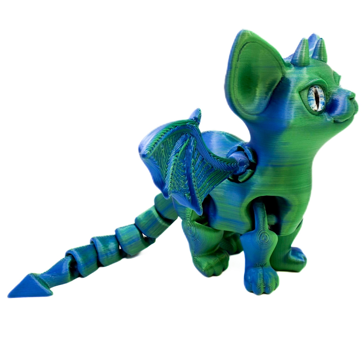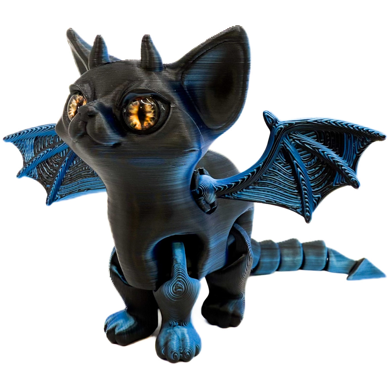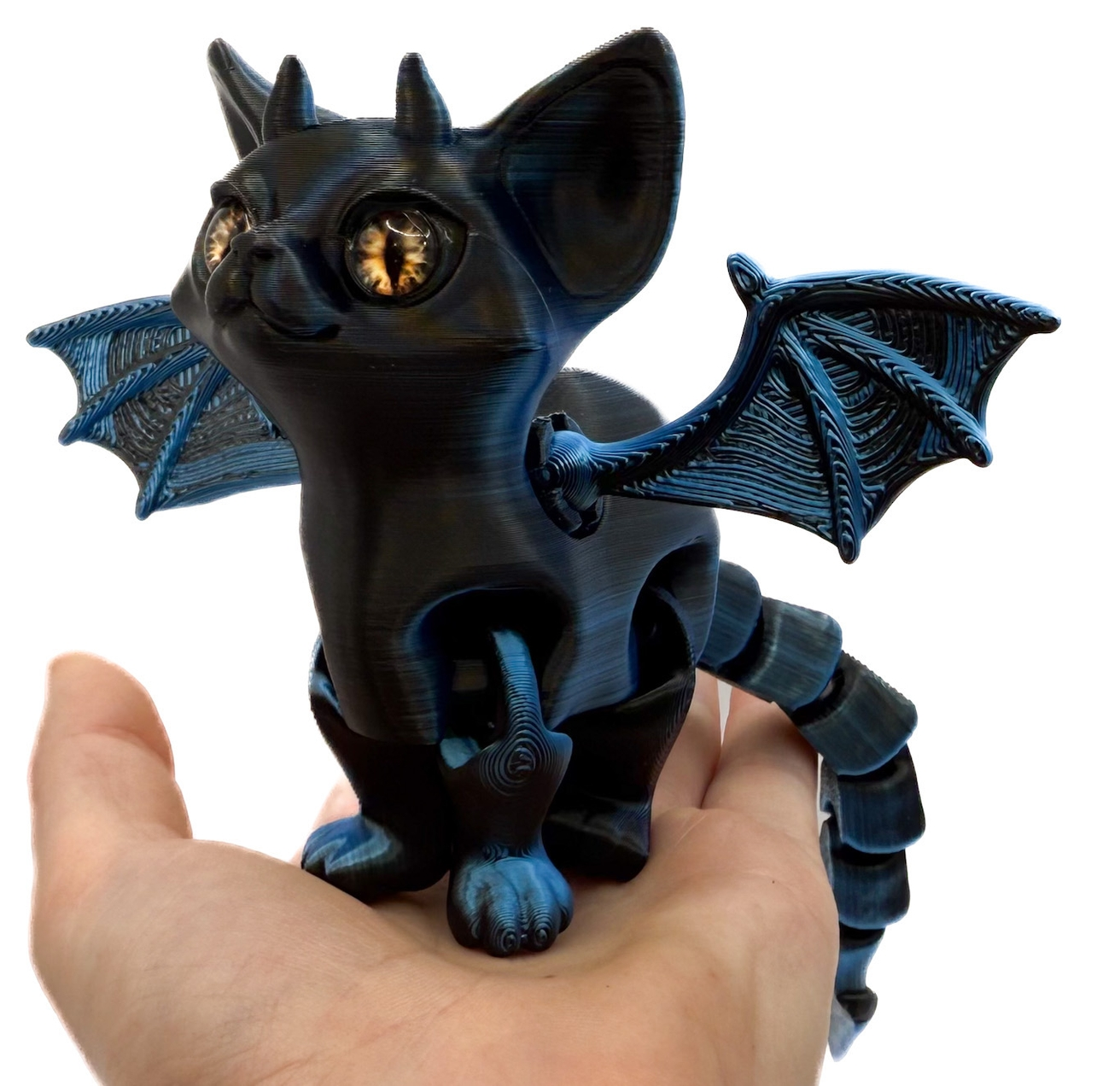 Super cute 3D printed cat with horns and wings.
